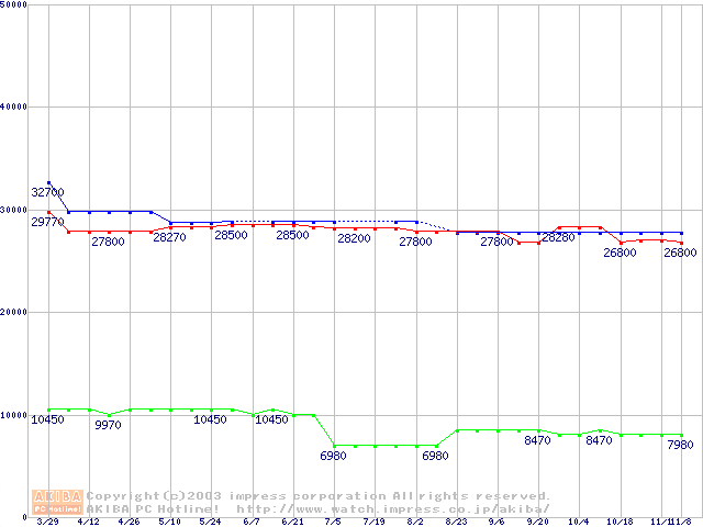 | [↓次グラフ]: | Socket 478 (micro-PGA,FSB 800MHz,L2 512KB,Hyper-Threading,Northwood)の最安値推移 |