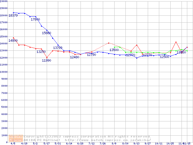 | [↑前グラフ]: | 2.5インチHDD 20GB~40GB未満(9.5mm厚)の最安値推移 |