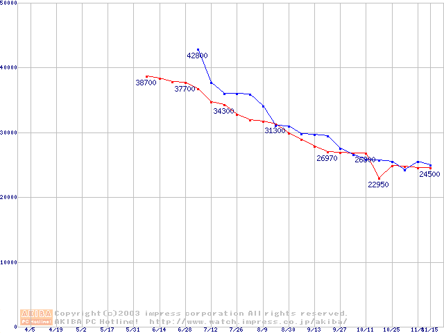 | [↓次グラフ]: | 2.5インチHDD 60GB~80GB未満(9.5mm厚,4200rpm)の最安値推移 |