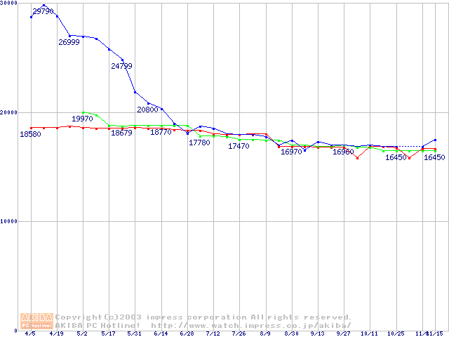 | [↓次グラフ]: | 2.5インチHDD 60GB~80GB未満(9.5mm厚,5400rpm)の最安値推移 |