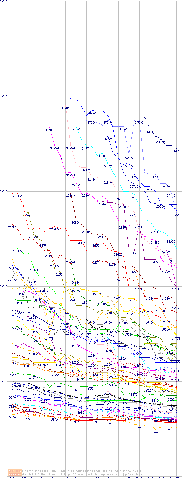 ※製品名をクリックすると個別のグラフを表示します ※点線部は販売店が確認できなかった、または調査データがないことを示します |