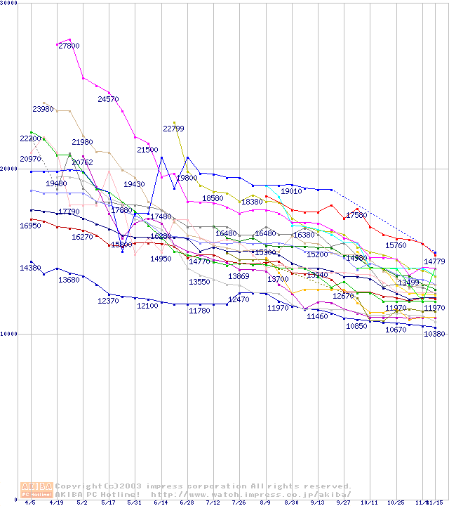 ※製品名をクリックすると個別のグラフを表示します ※点線部は販売店が確認できなかった、または調査データがないことを示します |