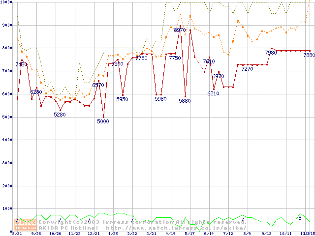 PC100 SDRAM DIMM CasLatency=2の最安値推移