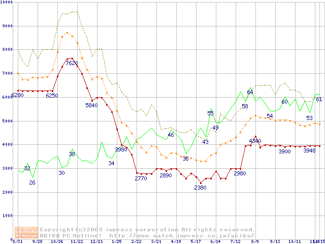 メモリ主要製品の最安値推移