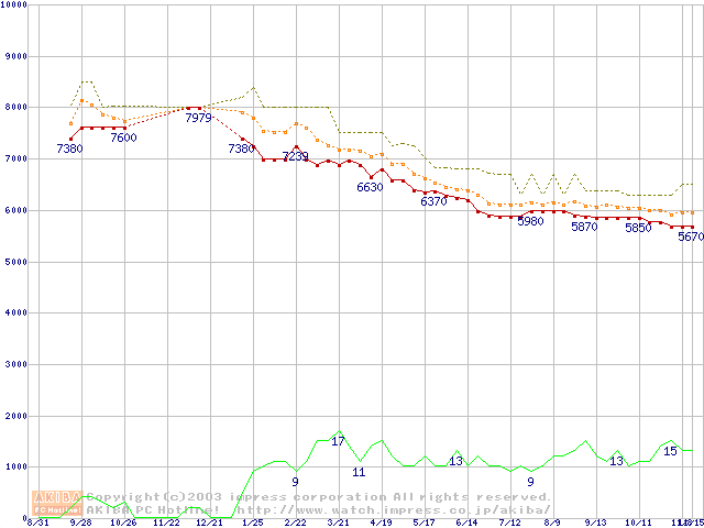 Fireball 3 (5400rpm,UltraATA/133,2MB,FDB)の最安値推移