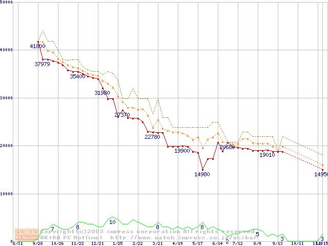 WD Caviar (7200rpm,UltraATA/100,2MB)の最安値推移