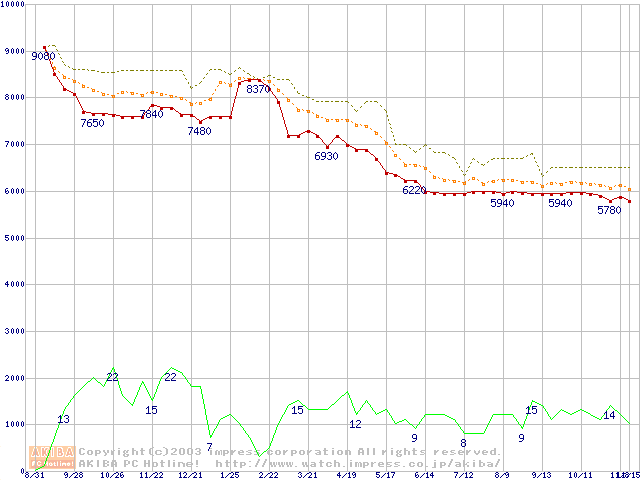 DiamondMax Plus 8 (7200rpm,2MB,UltraATA/133,FDB)の最安値推移