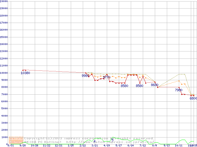 SpinPoint V60 (5400rpm,UltraATA/100,2MB)の最安値推移