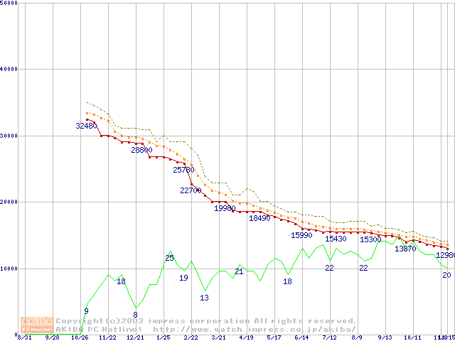 DiamondMax Plus 9 (7200rpm,8MB,UltraATA/133,FDB)の最安値推移