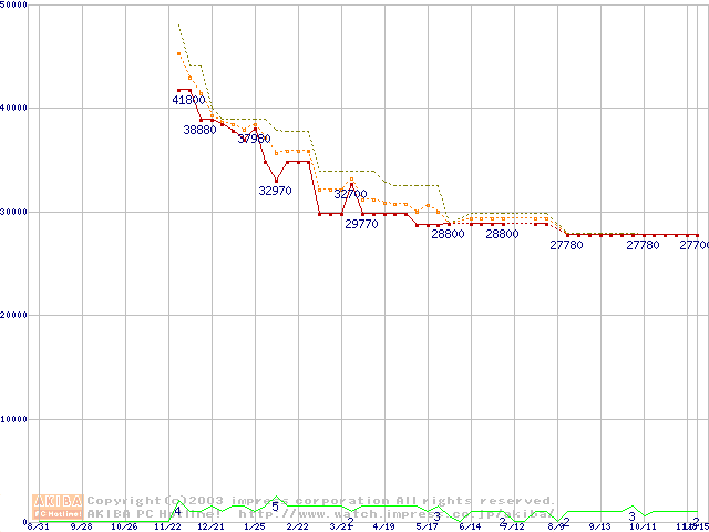 PC1066 DRDRAM RIMM4200(32bit)の最安値推移