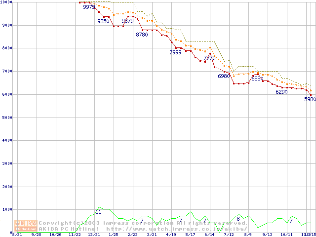 Deskstar 180GXP IC35L060AVV207-0/40GB (41.1GB)の価格推移