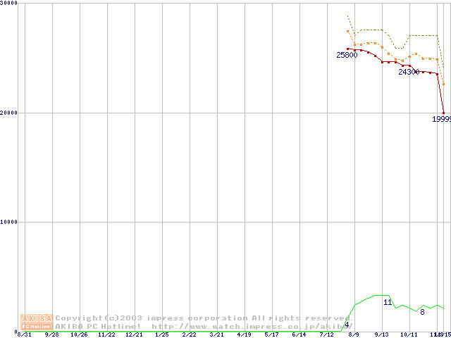 MHT20x0ATシリーズ (9.5mm,4200rpm,UltraATA/100,2MB,FDB,40GB/Platter,FDB)の最安値推移