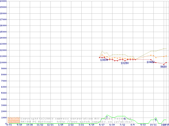MKシリーズ (9.5mm,4200rpm,2MB,FDB,30GB/Platter)の最安値推移