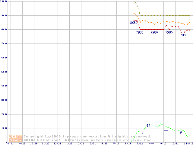 WD Caviar (7200rpm,UltraATA/133,2MB)の最安値推移
