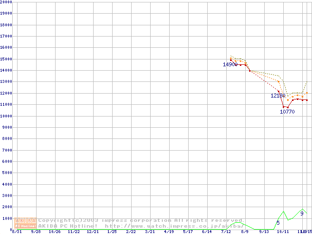 HDD主要製品(最安値1万円~1万5千円未満)の最安値推移