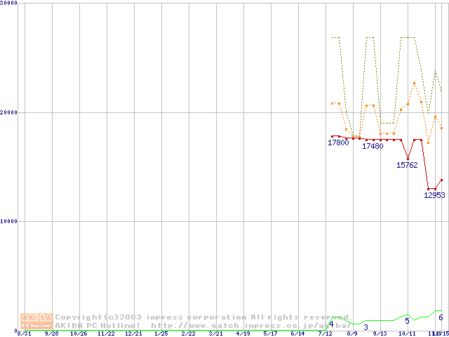 PC3700(DDR466) DDR SDRAM DIMMの最安値推移