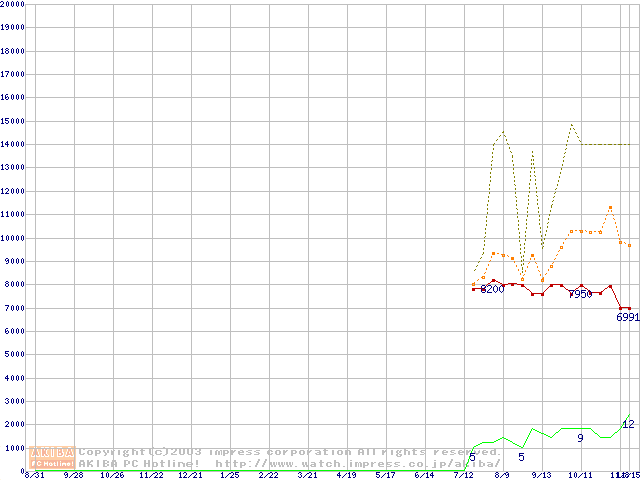 メモリ主要製品の最安値推移