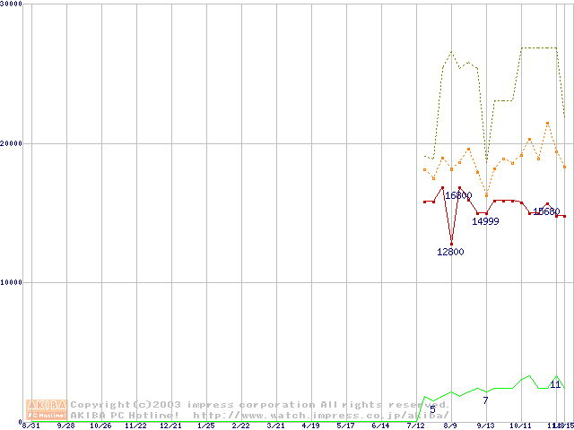 PC4000(DDR500) DDR SDRAM DIMMの最安値推移