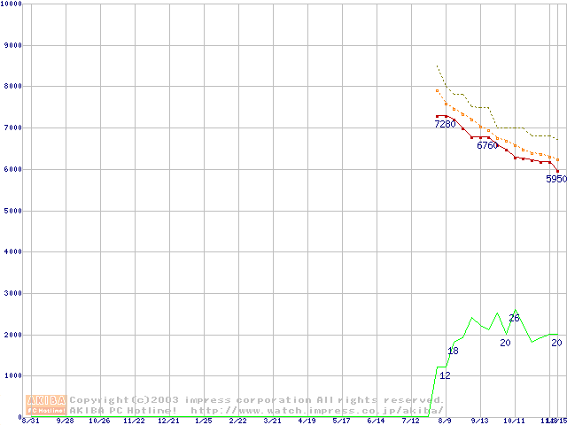 Deskstar 7K250 (7200rpm,UltraATA/100,FDB)の最安値推移