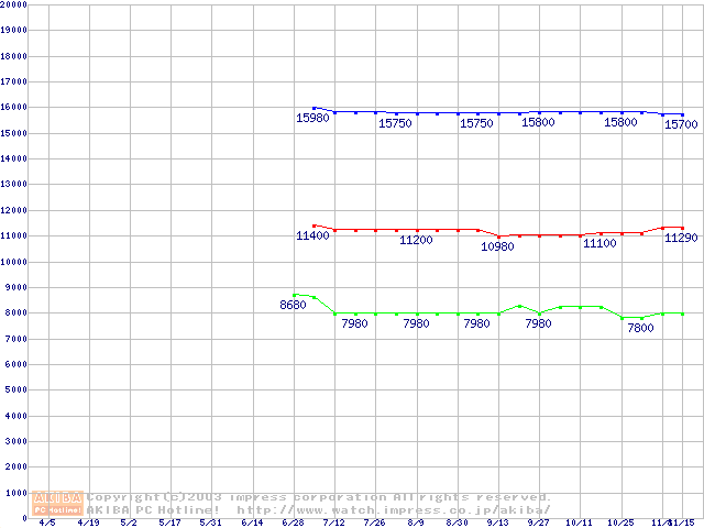 | [↑前グラフ]: | WD Caviar(Special Edition) (7200rpm,UltraATA/100,8MB)の最安値推移 |