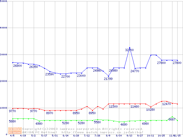| [↑前グラフ]: | PC2100(DDR266) DDR SDRAM DIMM(CL 2.0)の最安値推移 |