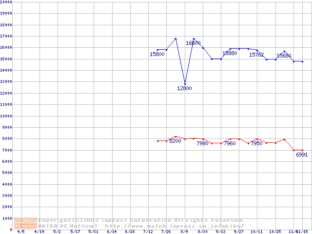 | [↓次グラフ]: | PC4300(DDR533) DDR SDRAM DIMMの最安値推移 |