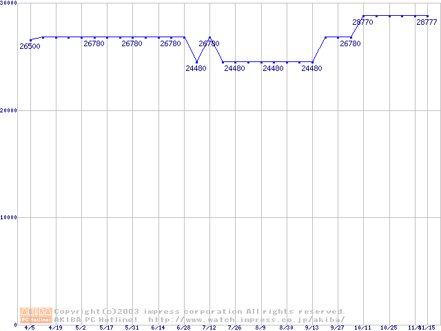 | [↑前グラフ]: | PC800-40 DRDRAM RIMMの最安値推移 |