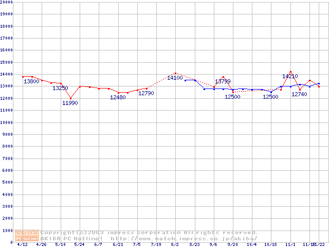 | [↑前グラフ]: | 2.5インチHDD 20GB~40GB未満(9.5mm厚)の最安値推移 |