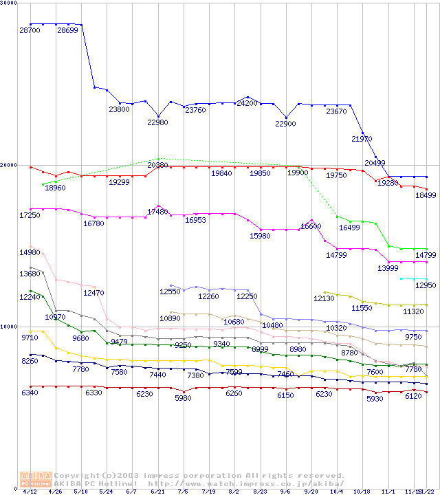 Socket 370・FSB 133MHzの最安値推移