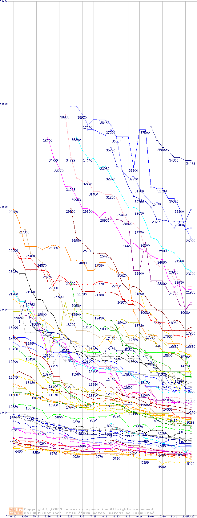 ※製品名をクリックすると個別のグラフを表示します ※点線部は販売店が確認できなかった、または調査データがないことを示します |