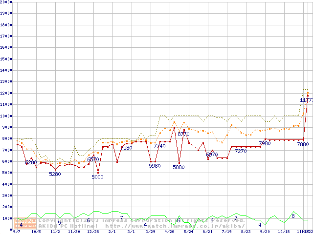 PC100 SDRAM DIMM CasLatency=2の最安値推移