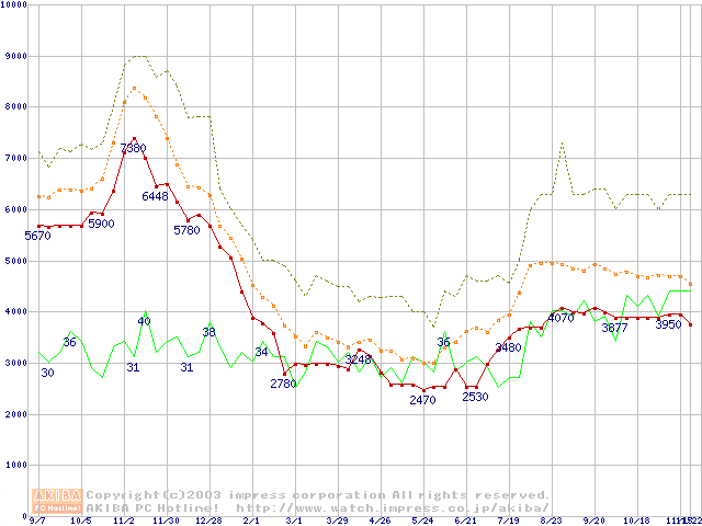 メモリ主要製品の最安値推移