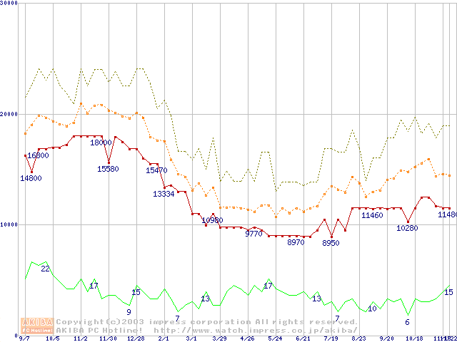 メモリ主要製品の最安値推移