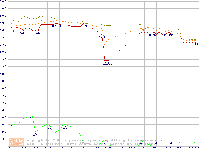 Socket 478 (micro-PGA,FSB 400MHz,L2 512KB,Northwood)の最安値推移