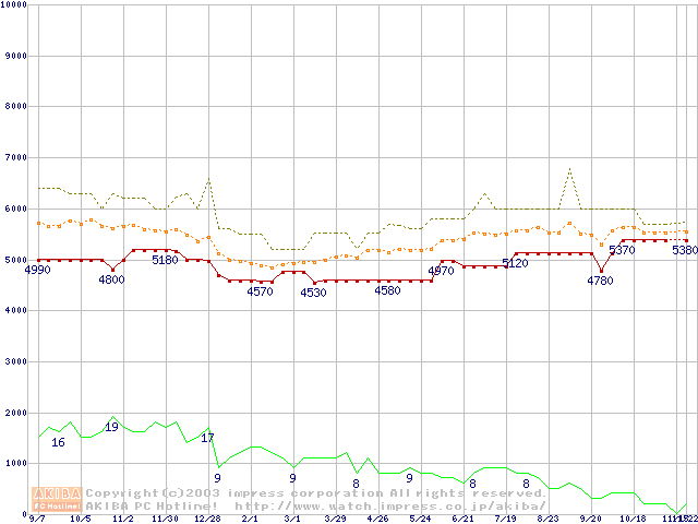 PC800-40 DRDRAM RIMMの最安値推移