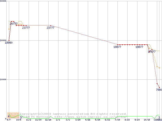 PC1066 DRDRAM RIMM ECC対応の最安値推移