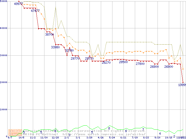 PC1066 DRDRAM RIMM4200(32bit)の最安値推移