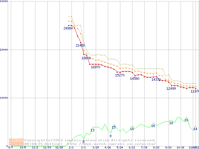 DiamondMax 16 (5400rpm,UltraATA/133,2MB,80GB/Platter,FDB)の最安値推移