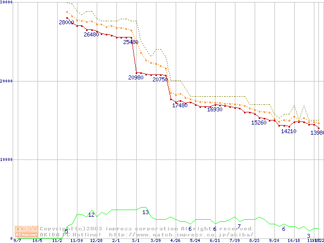 Socket A (OPGA,FSB 266MHz,L2 256KB,Thoroughbred)の最安値推移