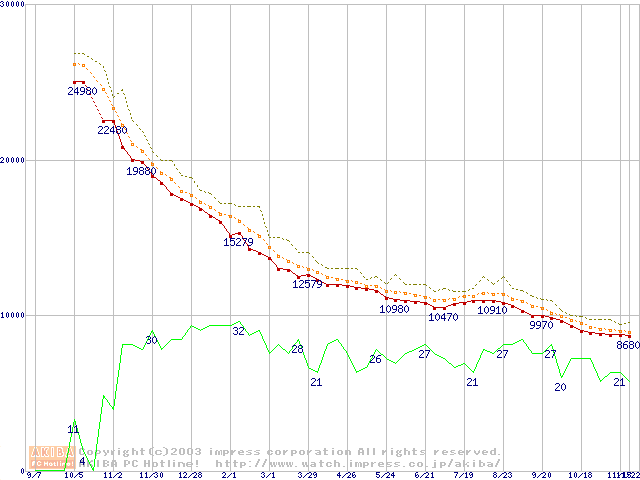 Deskstar 180GXP (7200rpm,2MB,UltraATA/100,FDB)の最安値推移