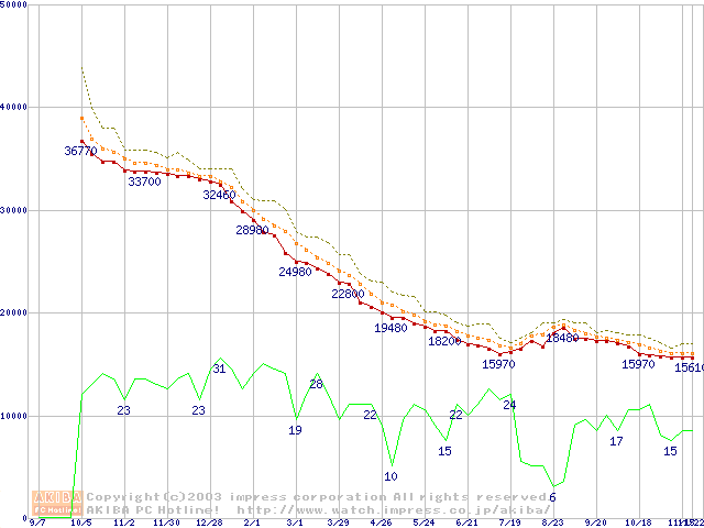Deskstar 180GXP (7200rpm,8MB,UltraATA/100,FDB)の最安値推移