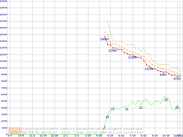 DiamondMax Plus 9 (7200rpm,8MB,SerialATA/150,FDB)の最安値推移