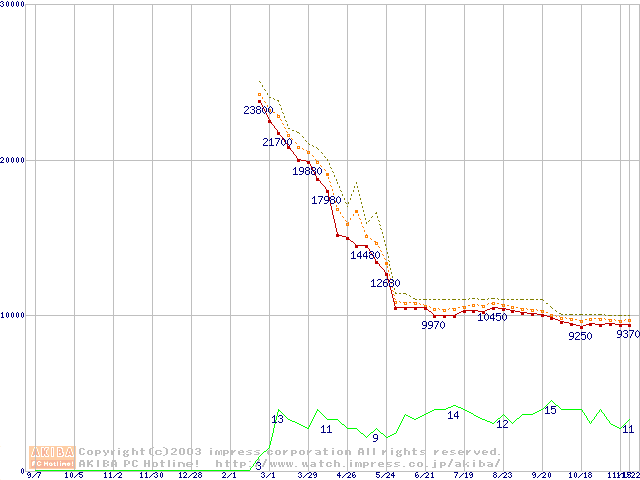 Socket A (OPGA,FSB 333MHz,L2 512KB,Barton)の最安値推移