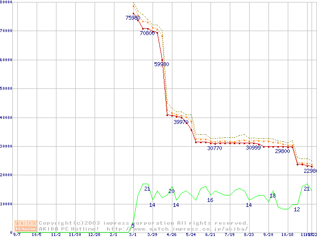 Athlon XP 3000+ (2.17GHz) リテールパッケージの価格推移