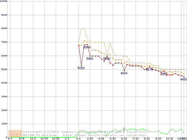 Socket 370 (PGA,FSB 133MHz,L2 64KB,Nehemiah)の最安値推移