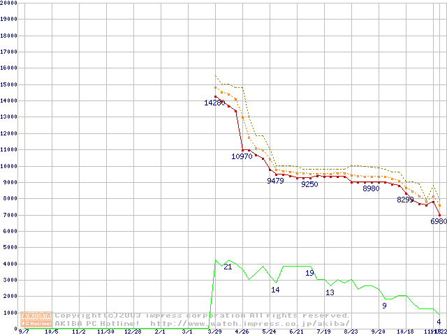 Socket 478 (micro-PGA,FSB 400MHz,L2 128KB,Northwood)の最安値推移