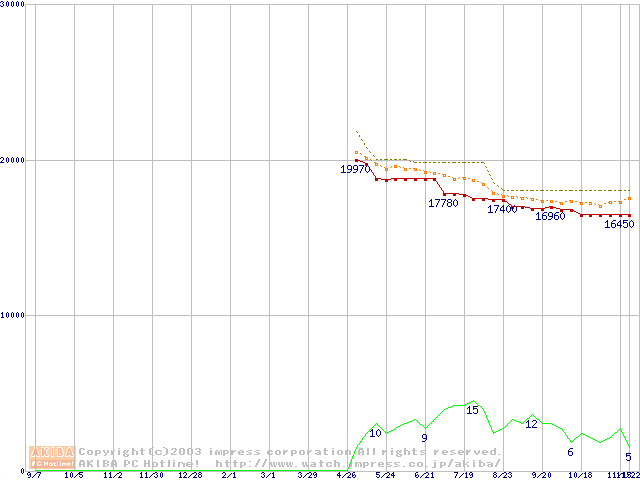 MHT20x0ATシリーズ (9.5mm,4200rpm,UltraATA/100,2MB,FDB,40GB/Platter,FDB)の最安値推移