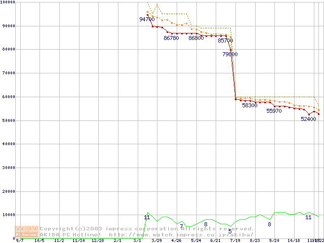 Xeon 3.06GHz(FSB533) リテールパッケージの価格推移