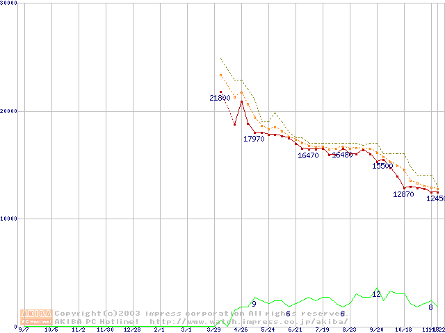WD Raptor (10000rpm,SerialATA,8MB)の最安値推移