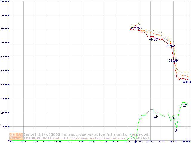 Socket 478 (micro-PGA,FSB 800MHz,L2 512KB,Hyper-Threading,Northwood)の最安値推移